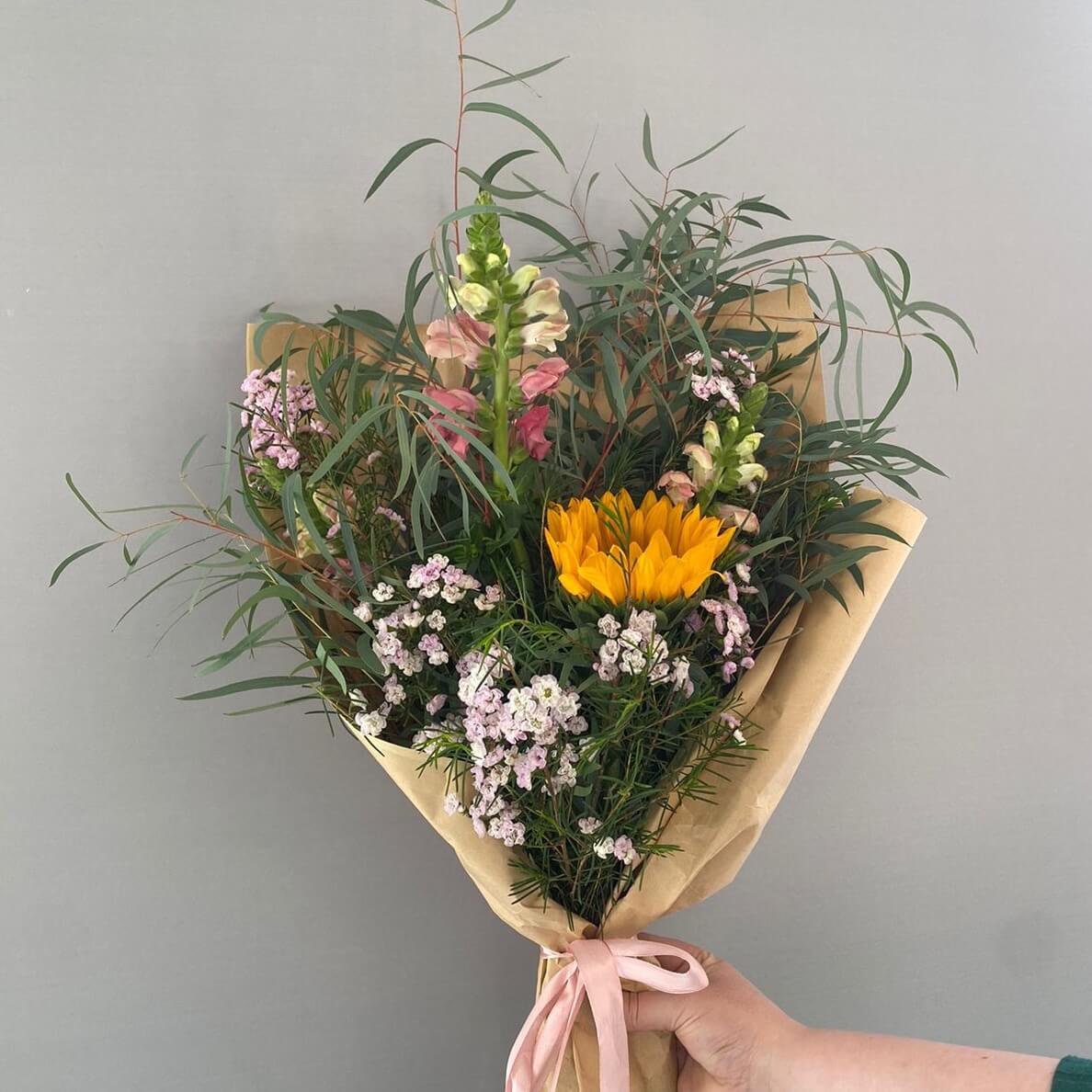 Создавать букеты из сезонных цветов и материалов